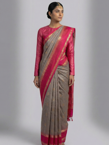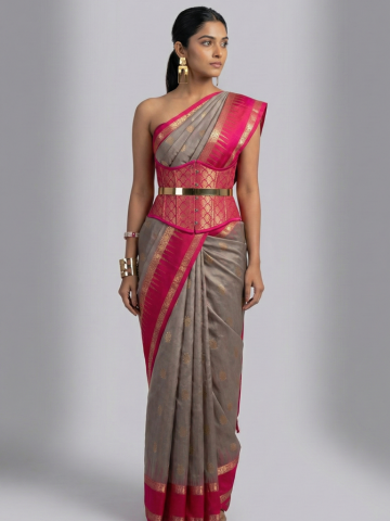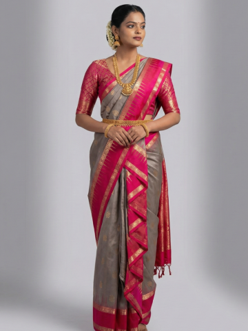 Kanjeevaram Soft Silk Saree in Gunmetal & Magenta