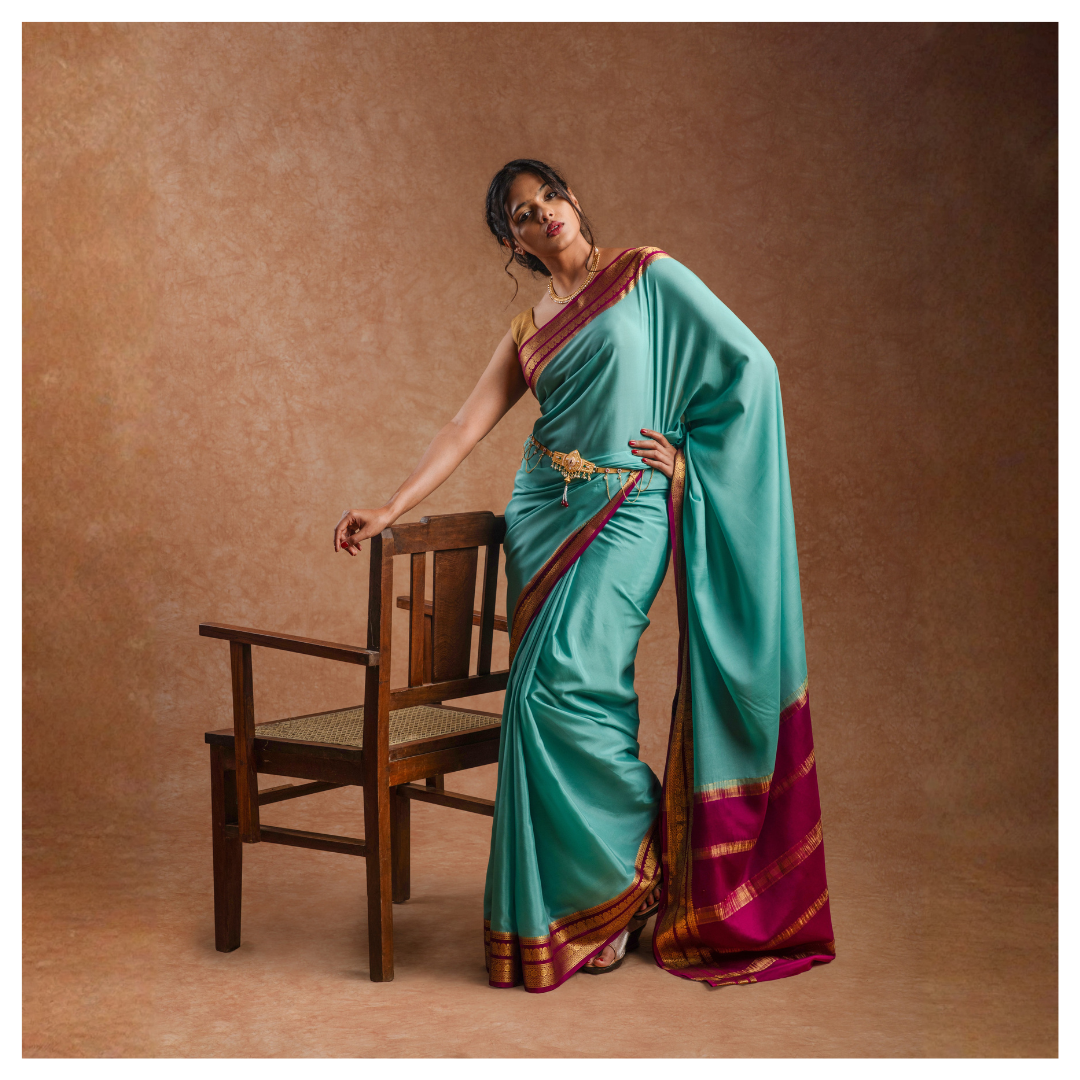 Mysore Crepe Silk Plain Saree in Burnt Orange & Forest Green