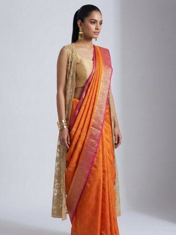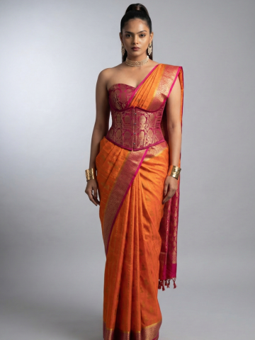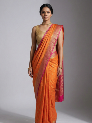 Mysore Crepe Silk Saree in Tangerine & Magenta